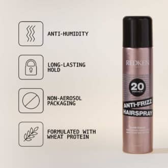 • Redken Anti-Frizz 20 Hairspray – Long-Lasting Hold & Strong, Shiny Finish – 250ml