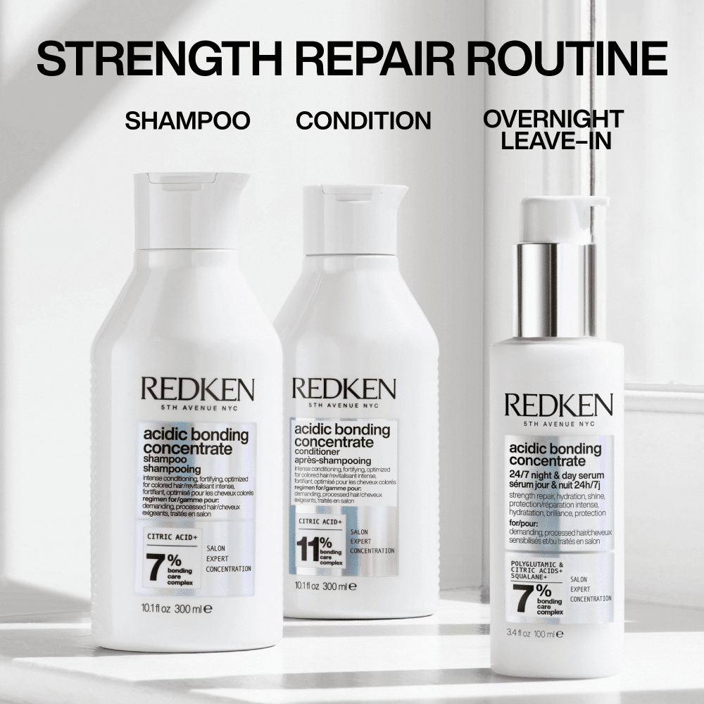 Redken’s Acidic Bonding Concentrate 24/7 Night & Day Hair Serum is a revolutionary bonding serum that repairs and strengthens processed, damaged hair. This hair treatment works 24/7 to nourish and revitalize your hair.