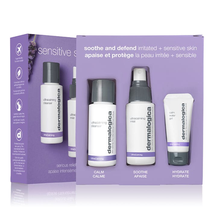 This powerful trio calms, soothes, hydrates and helps defend sensitive skin against future flare-ups. Contains UltraCalming Cleanser 50 ml (gentle cleansing cream), UltraCalming Mist 50 ml (soothing, cooling spritz) and Calm Water Gel 15 ml (weightless water-gel moisturiser).