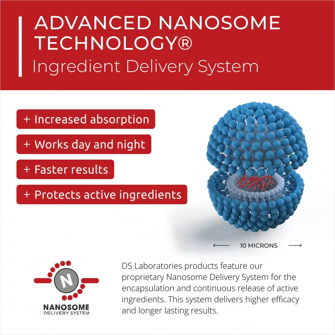 Our unique formula, developed and recommended by top dermatologists, is encapsulated in our proprietary Nanosome Delivery System® for maximum results.