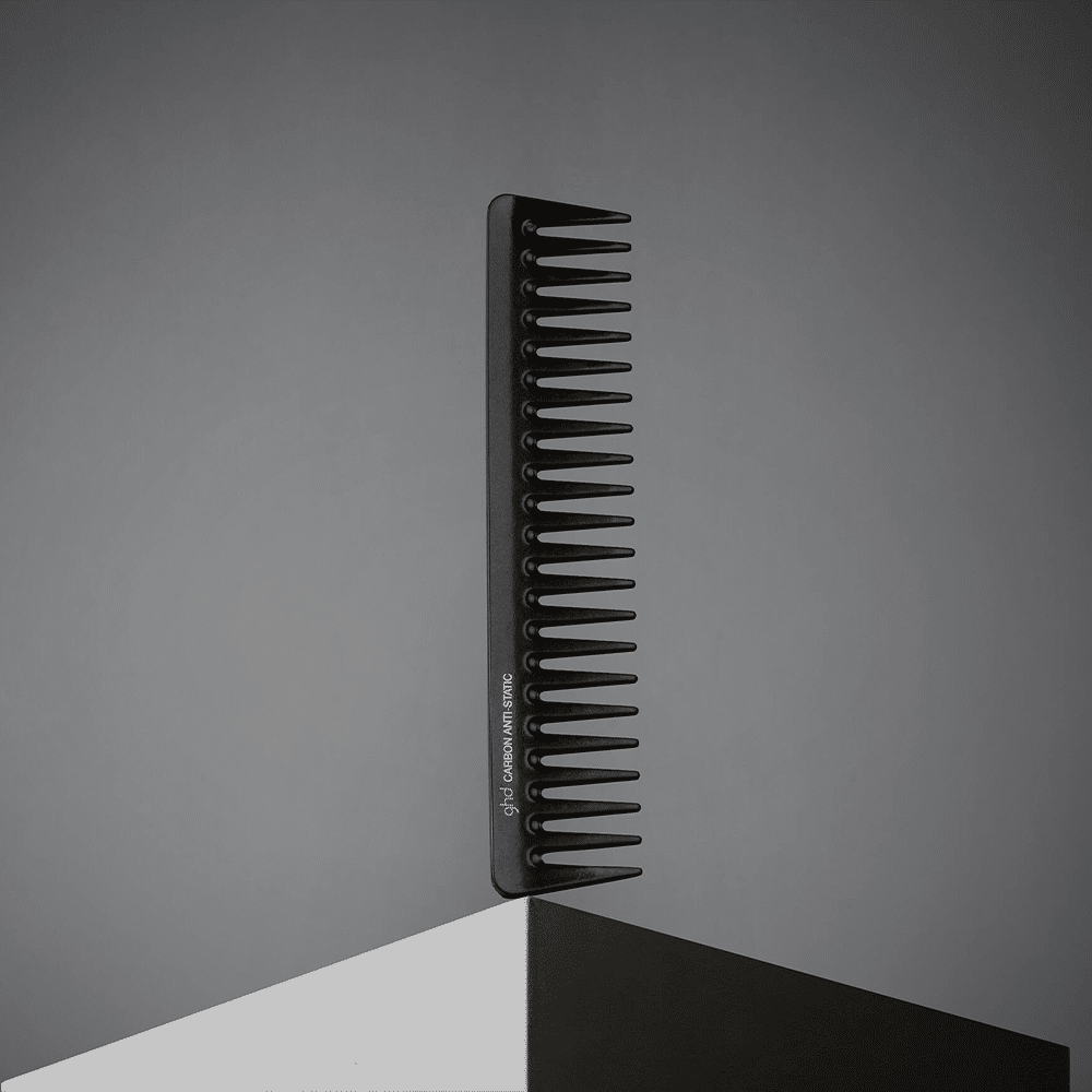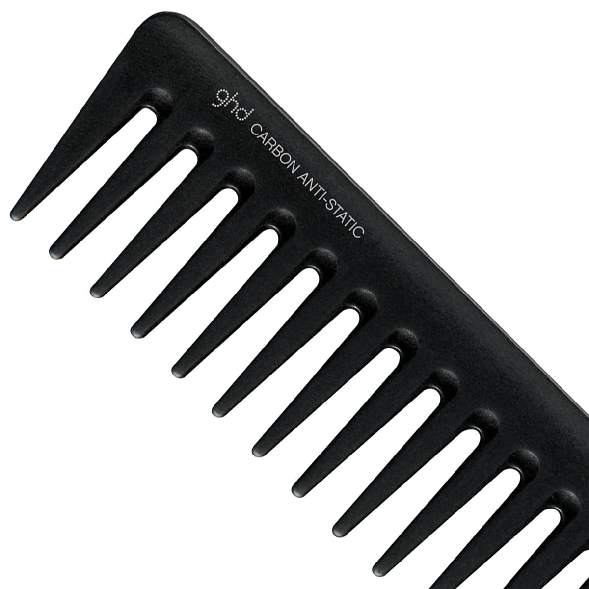 Detangling damp hair. The ghd the comb out – detangling comb has a wide-toothed design that allows for delicate detangling on damp hair, which is fragile and more prone to damage.