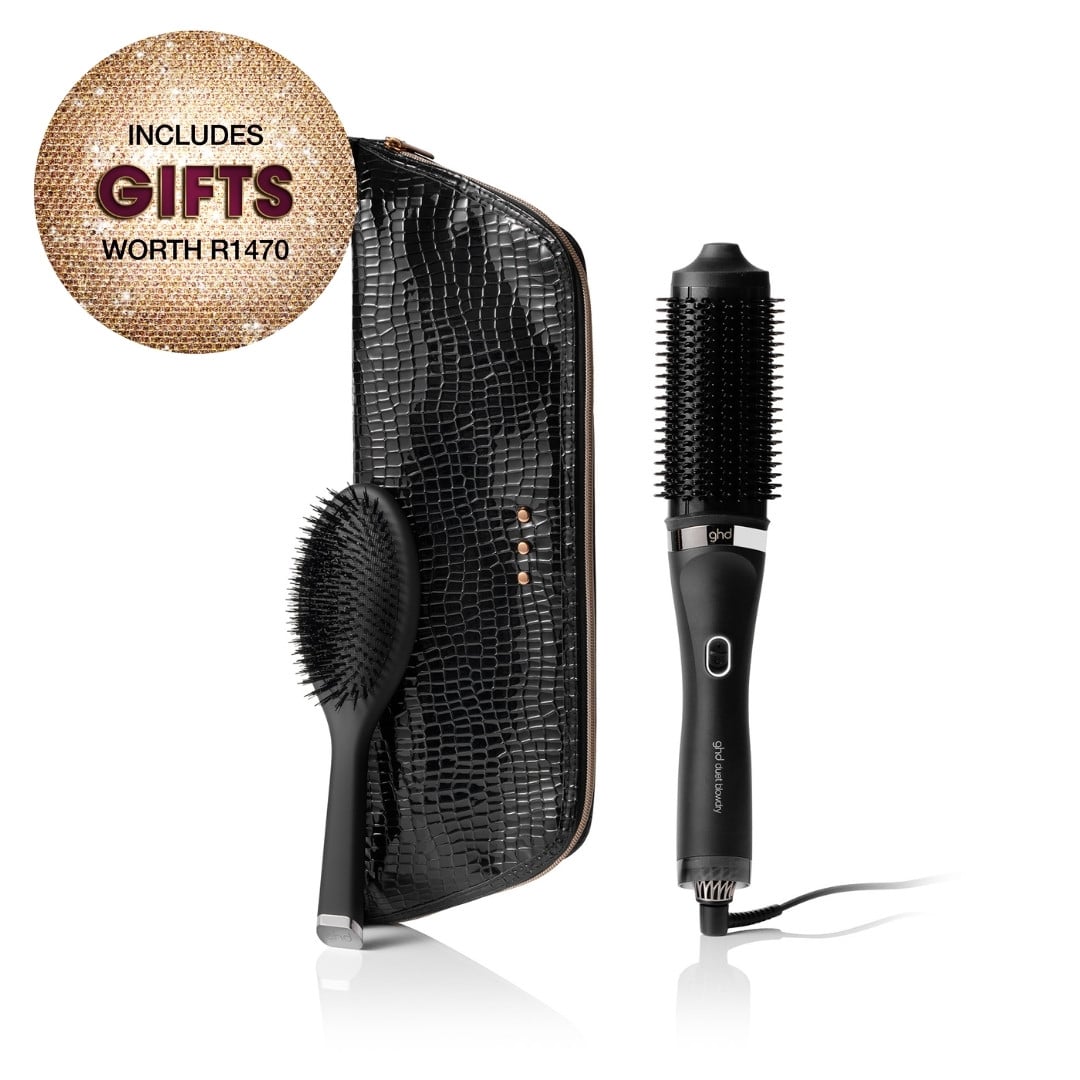 This indulgent gift set features the ghd Duet Blowdry™ professional 2-in-1 hair dryer brush, the ghd The Dresser oval dressing brush, a heat-resistant bag and mat and a cleaning brush, bringing you everything you need for effortless, salon-worthy blow dries at home.