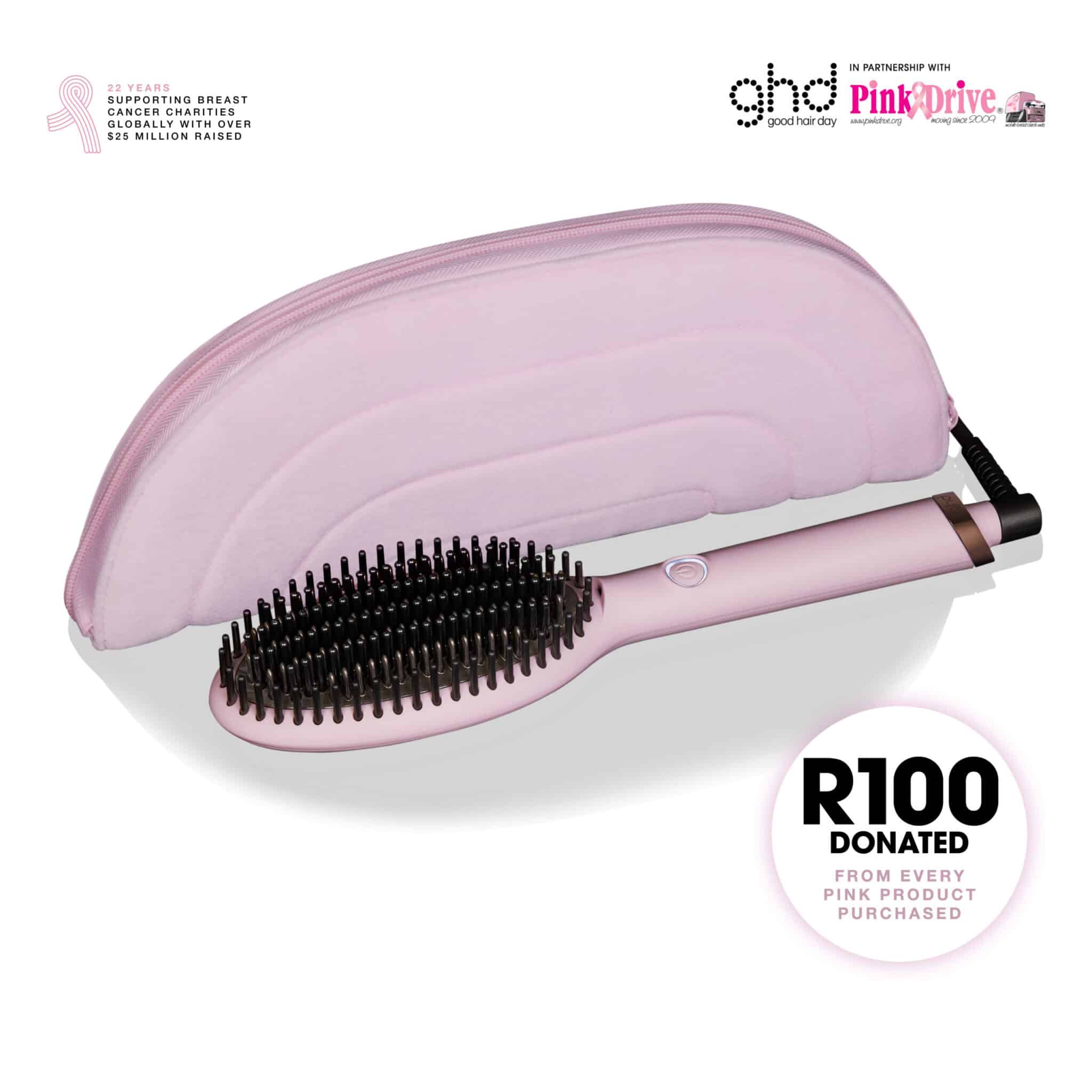 - New ghd Limited Edition Pink Collection in Pink Sorbet: R100 donated from every pink product purchased supporting the PinkDrive®