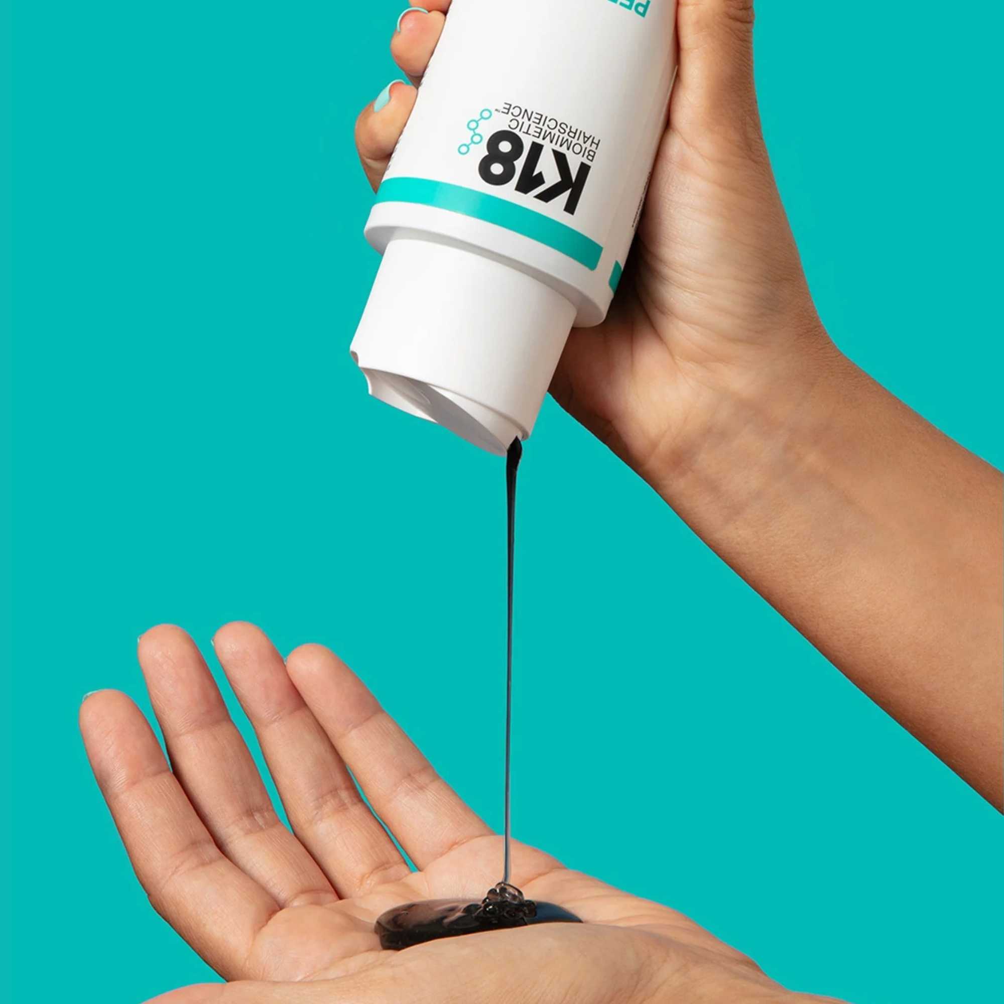 A color-safe, non-stripping clarifying shampoo with the K18PEPTIDE™ to gently but effectively remove 99% product buildup*, 95% sebum* + 76% copper* for detoxified, refreshed hair.