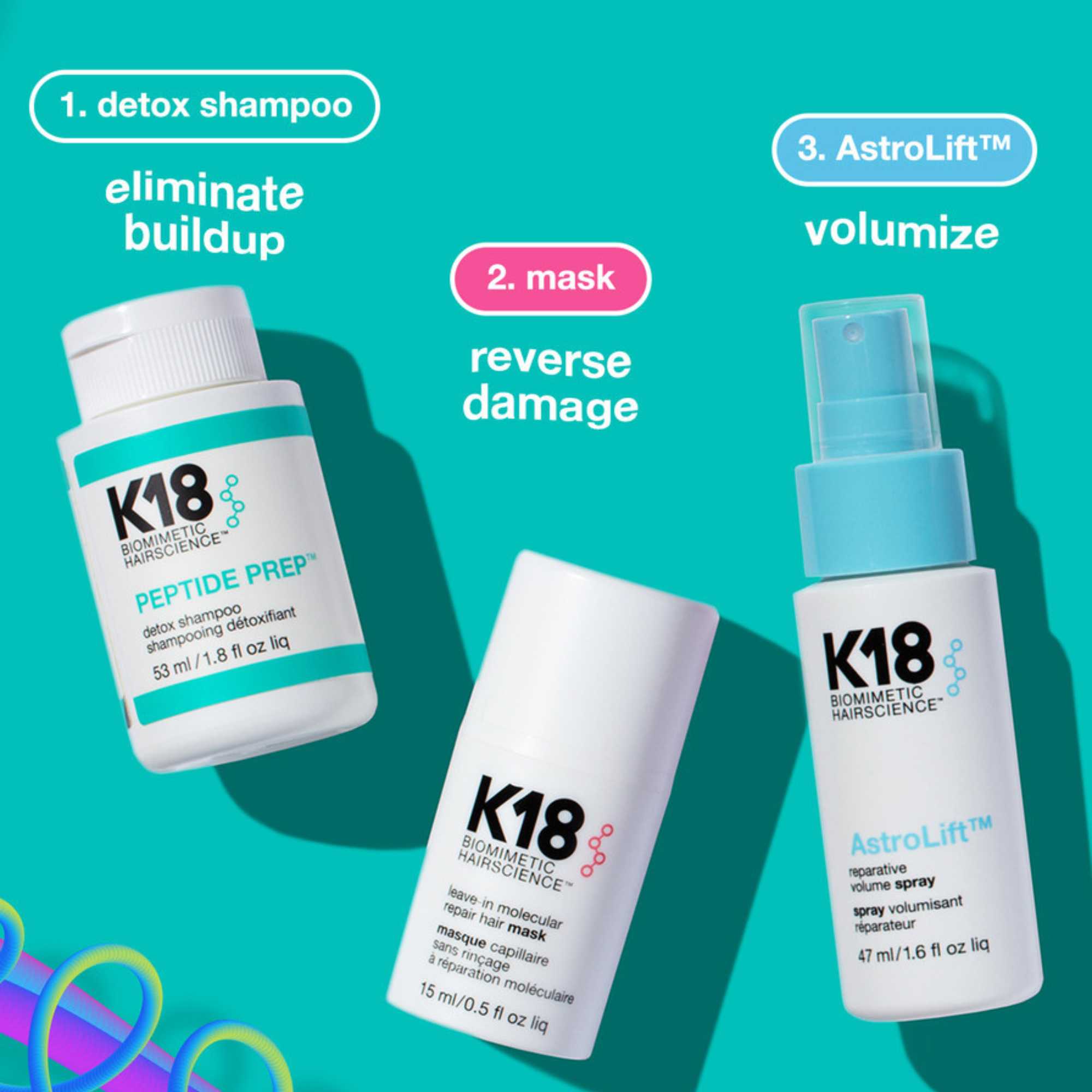 Reverses damage – powered by the K18PEPTIDE™ to help reverse the damage that can impact all hair types, especially fine, fragile + aging hair.