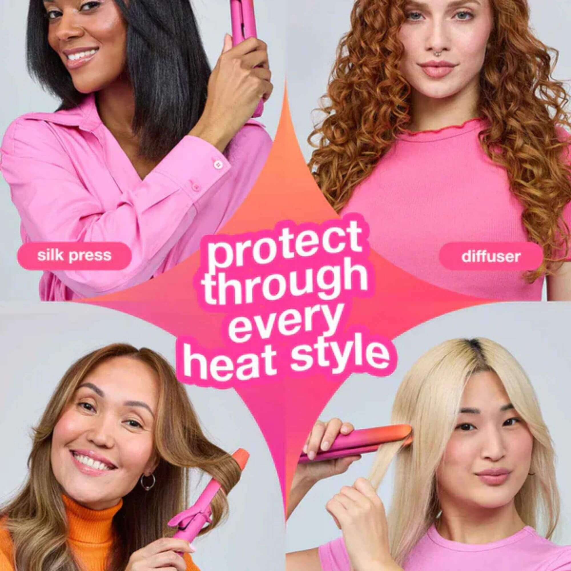 Resilicore™ heat-shielding technology is inspired by proteins in nature that can withstand extreme temperatures. Unlike traditional heat protectants that only coat the cuticle, the size + molecular makeup of resilicore™ allows it to penetrate deeper than ever before*, into hair’s inner cortex where heat damage can occur, forming a protective shield that fortifies from within.