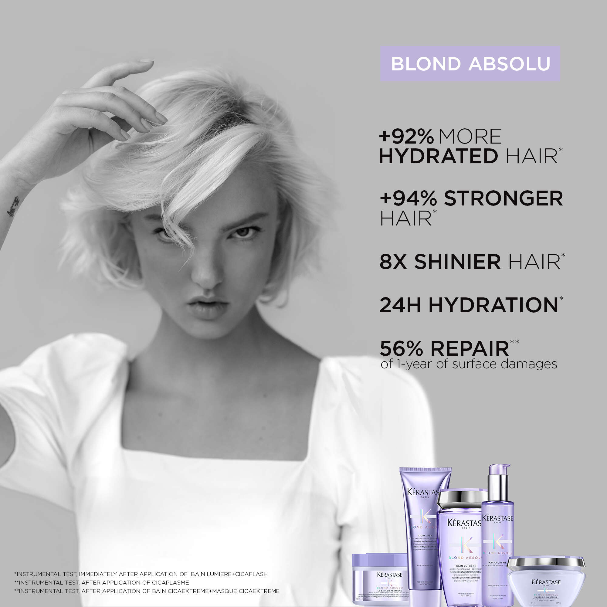 • Boosts hydration (+51%), softness (+65%), and shine (2× more).