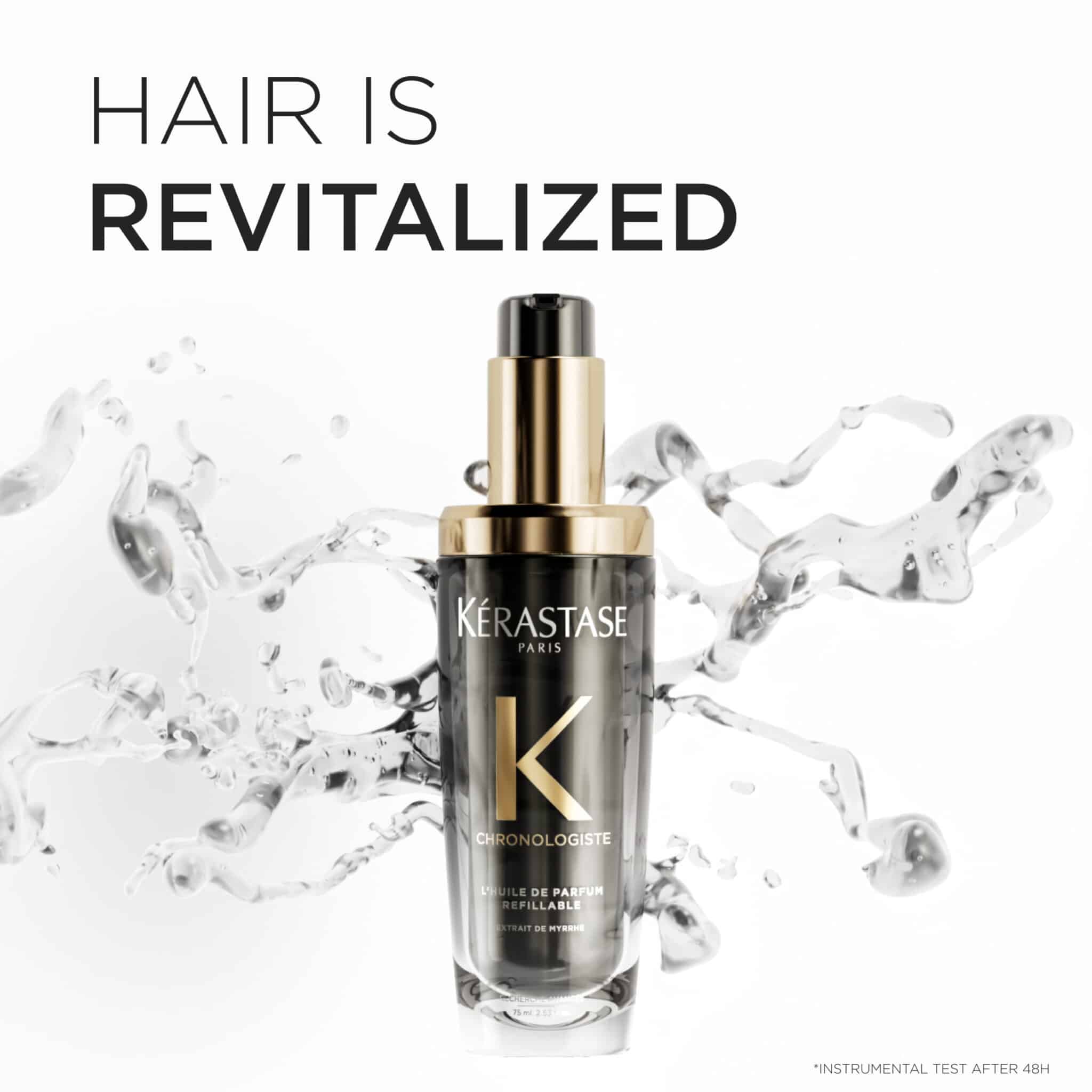 The Kérastase Chronologiste Huile De Parfum Revitalizing Hair Oil 75ml is a luxurious hair oil infused with Myrrh extract. A few drops leave hair revitalized, moisturized, and delicately perfumed.