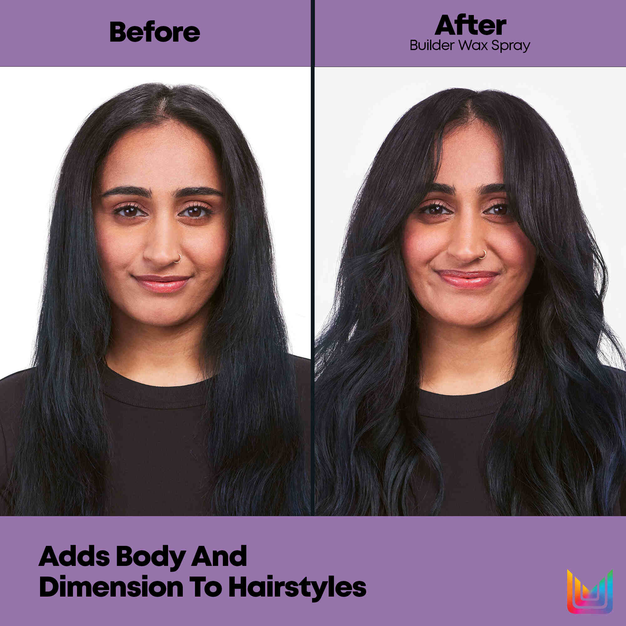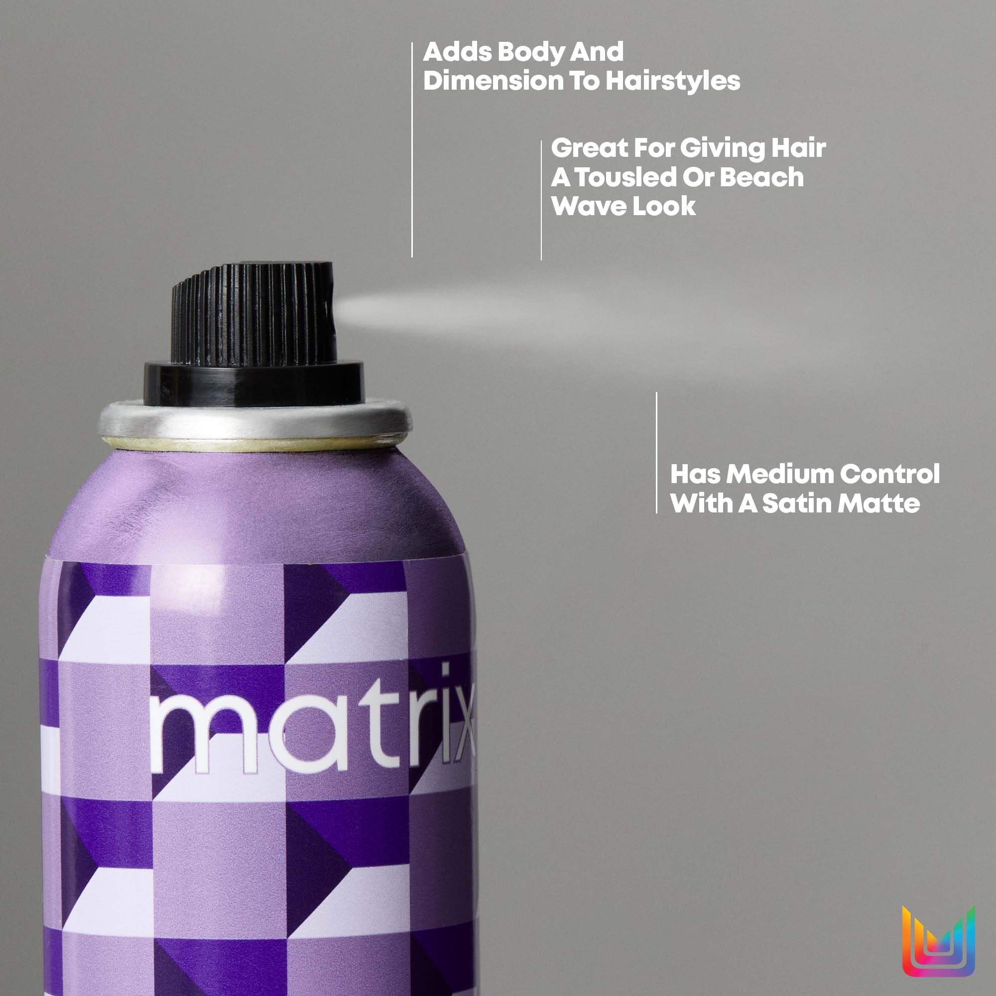 Matrix Styling Builder Wax Hairspray combines the ease of use and hold of a hairspray with the control and texture of a hair wax. This aerosol wax adds body and dimension to hairstyles, providing medium hold and a satin-matte finish. It adds texture and grit without a waxy feel, making it ideal for creating tousled or beach wave looks.