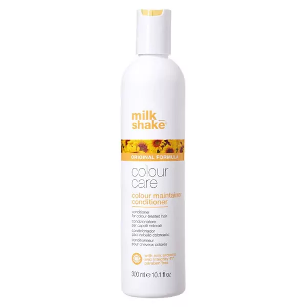 Milk Shake Color Maintainer Conditioner leaves hair smooth and radiant after every wash. In this conditioner for colored hair, milk proteins help condition and restore life to hair and integrity 41® defends against hair and color damage with naturally-derived antioxidants. To protect color vibrance, this hair color conditioner is sulfate and paraben-free. For best results, condition after using color maintainer shampoo.