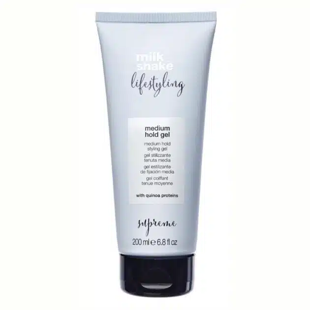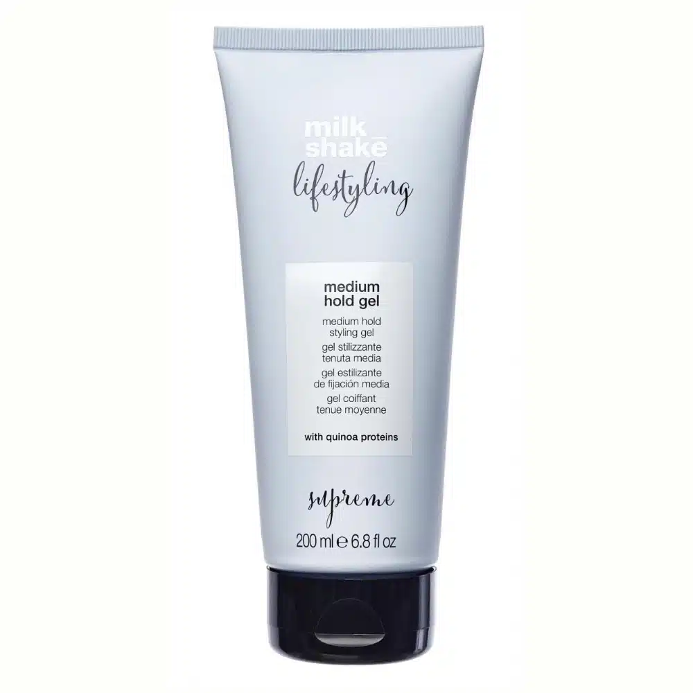milk_shake® lifestyling medium hold gel, medium hold styling gel. Provides hold to create defined styles with incredible shine. Adds structure to fine hair and gives body and definition to curls while shining and smoothing frizzy hair. Quick to dry and doesn’t leave residue.
