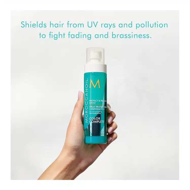 Shield your haircolor from daily damage. Protect & Prevent Spray helps keep haircolor from fading or becoming brassy by protecting it from exposure to environmental factors that weaken the hair. Its comprehensive approach to combatting these sources of color degradation include: