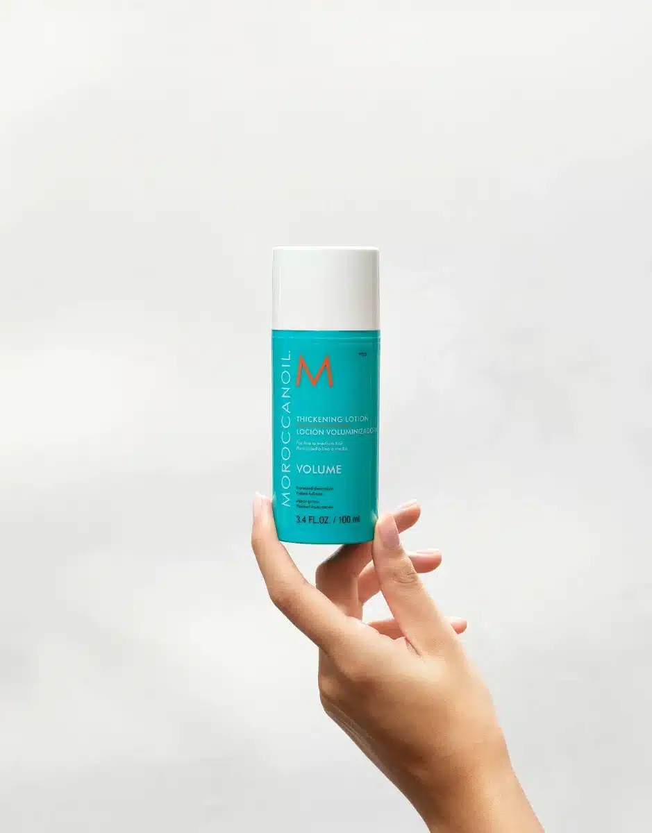 • Apply a quarter-sized amount of Moroccanoil® Thickening Lotion between palms.