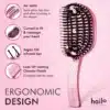 The Hailo’s novel rounded brush head comfortably fits the shape of your head, making detangling and styling easier and more efficient.