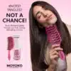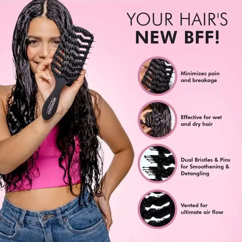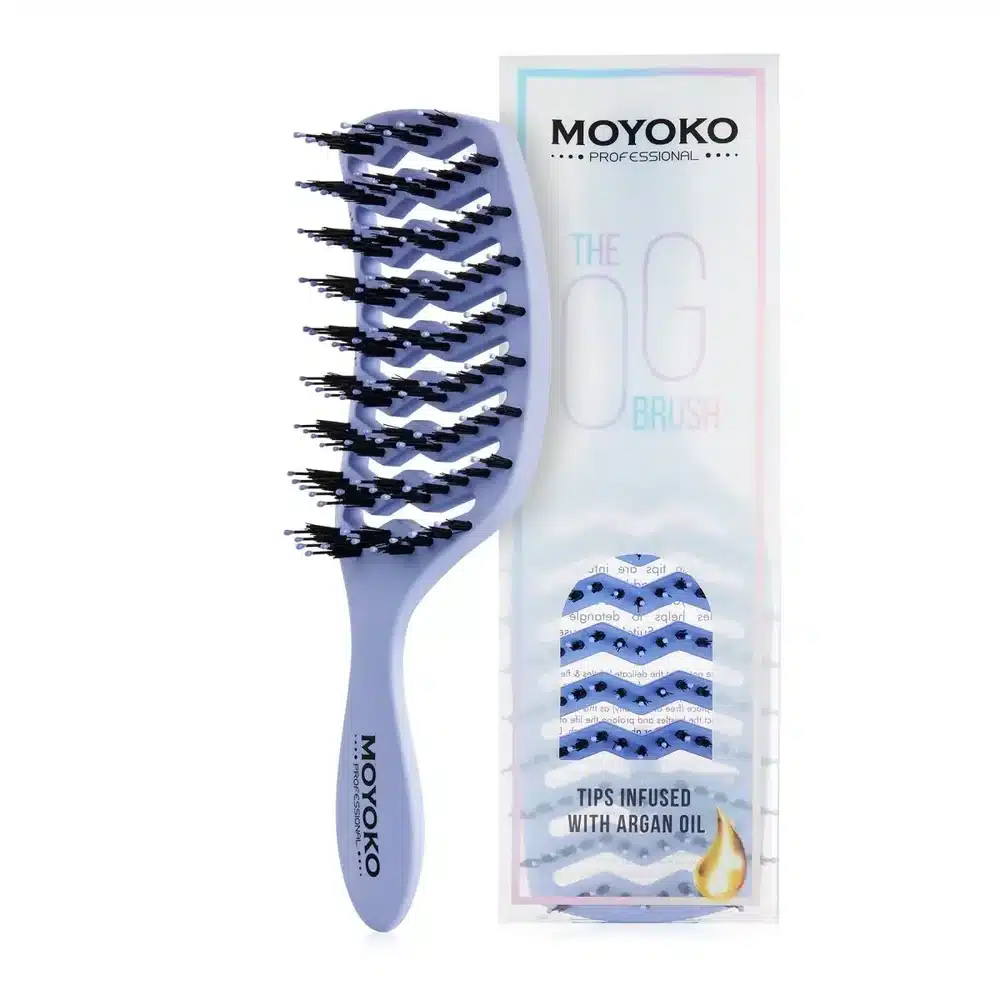 Moyoko Detangling Brush – Purple, a revolutionary solution for the prevalent issue of tangled hair. Unlike conventional hairbrushes, this innovative detangling brush utilizes soft, Argan oil-infused pins to glide through knots and frizz seamlessly, transforming your hair care routine into a pleasurable experience.
