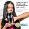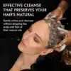 - Gently calms and cleanses without stripping the scalp and hair of their natural oils