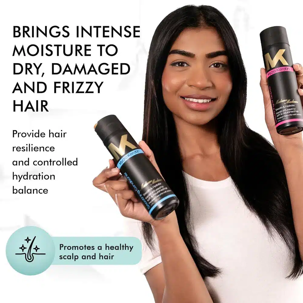 Discover the solution to thick, dry, and frizzy hair with Mycro Keratin Madame Madame Moisturizing Conditioner. Specially formulated for thick hair, this luxurious conditioner is your ultimate partner in achieving smooth, soft, and vibrant locks bursting with life.
