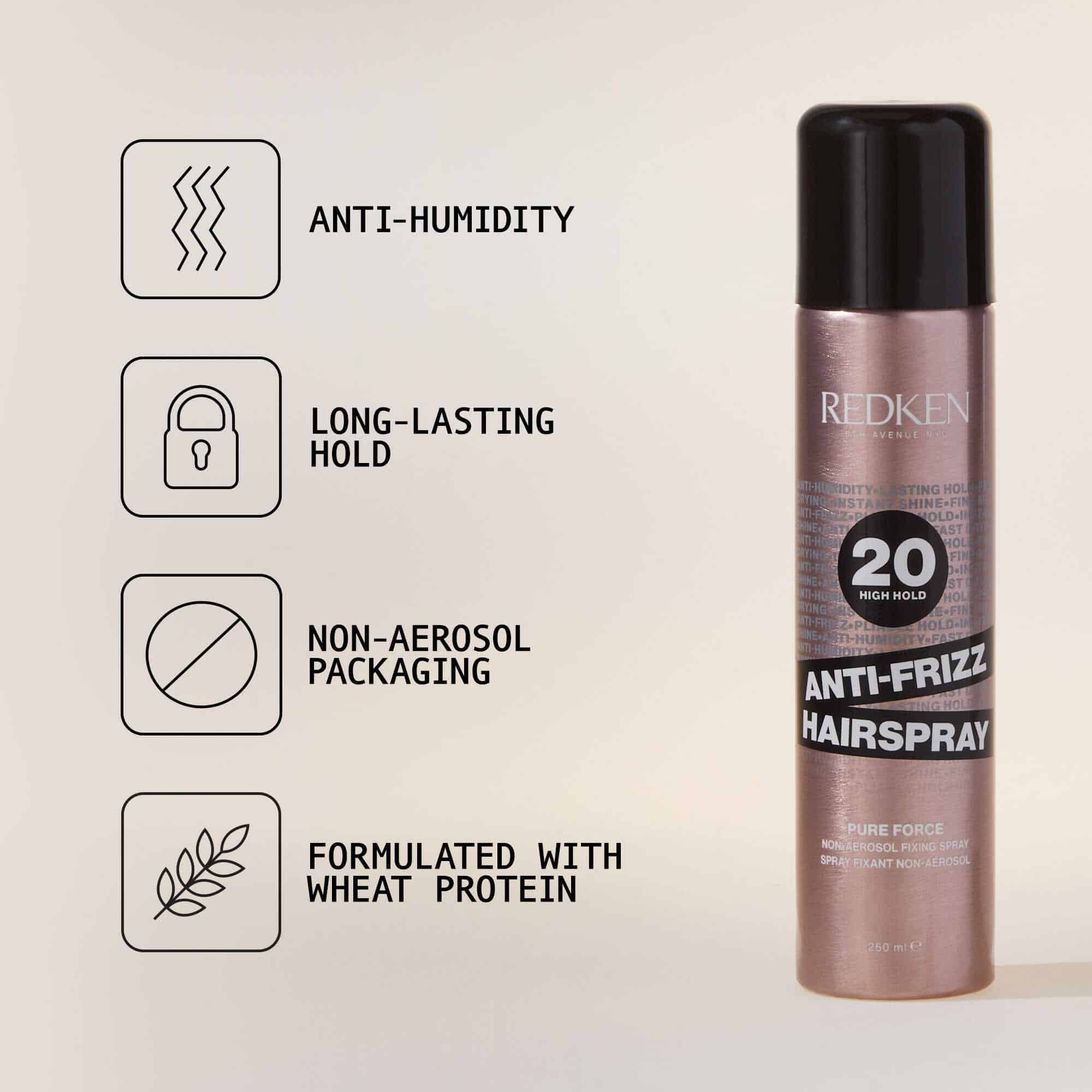 Redken Anti-Frizz 20 Hairspray – Long-Lasting Hold & Strong, Shiny Finish – 250ml