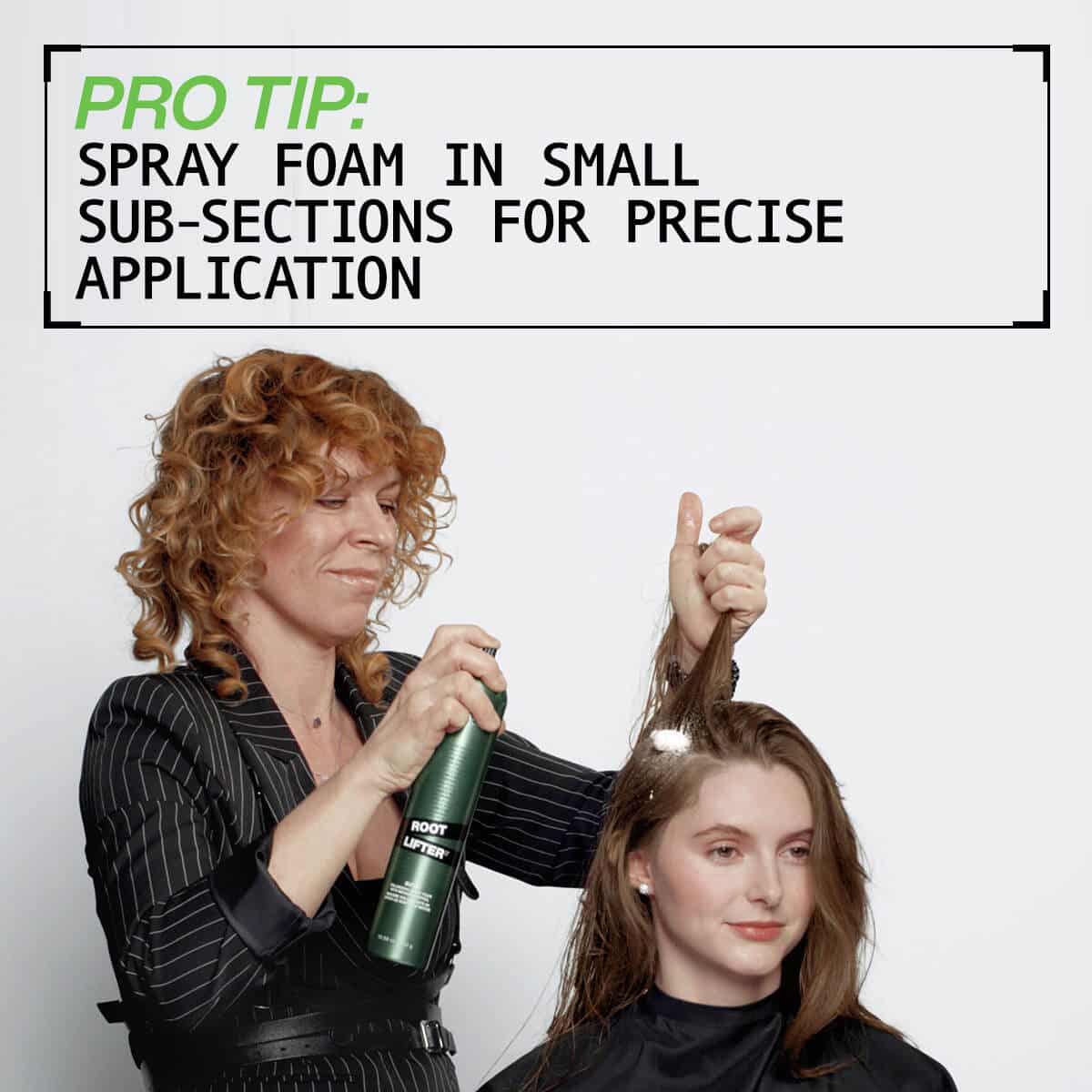- Targeted root lift: The product’s directional nozzle allows for precise application at the roots to create customizable volume. It can also be used for all-over fullness.