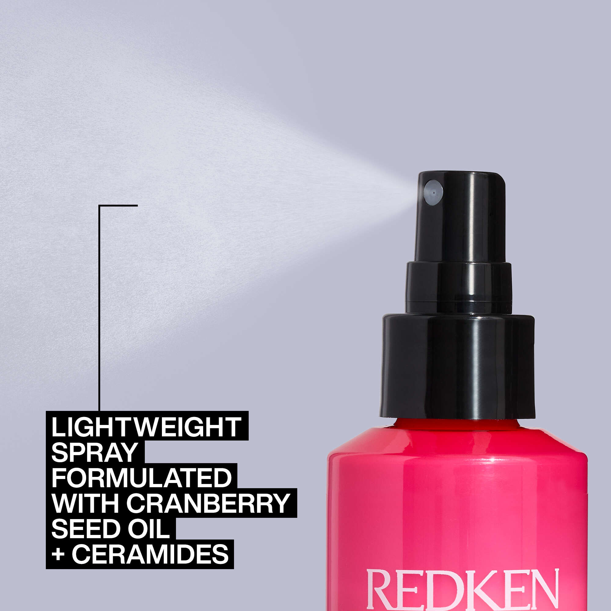 Redken Thermal Low Hold Hairspray is a protective, lightweight spray designed to shield hair from heat damage up to 232°C (450°F). It provides a low, flexible hold while maintaining shine and smoothness. Ideal for fine hair or styles requiring movement, it ensures heat-styled hair stays healthy and frizz-free.