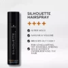 SILHOUETTE – PURE super hold formulation with micro-fine film formers for long lasting, yet invisible, strong hold without burdening the hair. Quick drying. Without stickiness. Brushes out easily.